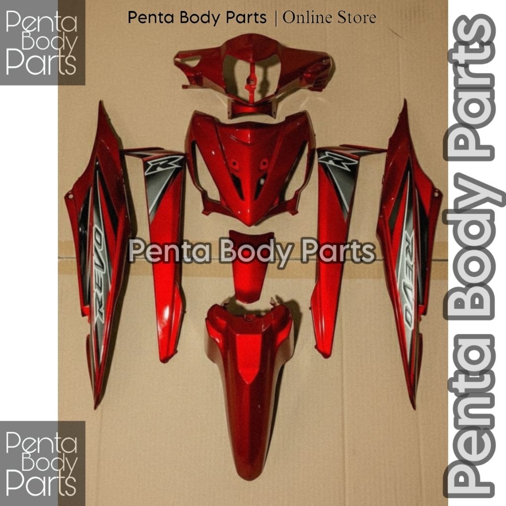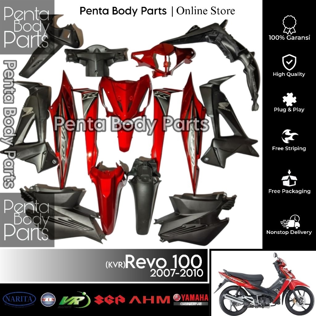 Full Cover Body Merah Revo 100 (KVR) - Ful Set Bodi Plus Lampu Honda Revo Lama / Lancip Silver Hitam 2007-2010
