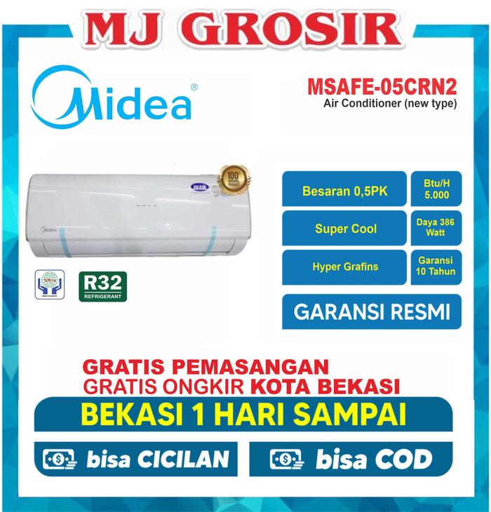 Ac Setengah Pk Ac Midea Msaf 05 Crn2 / Msafe 05 Crn2 + Pasang R32 Standard Low Super Cool 0,5pk - Dus Bawaan