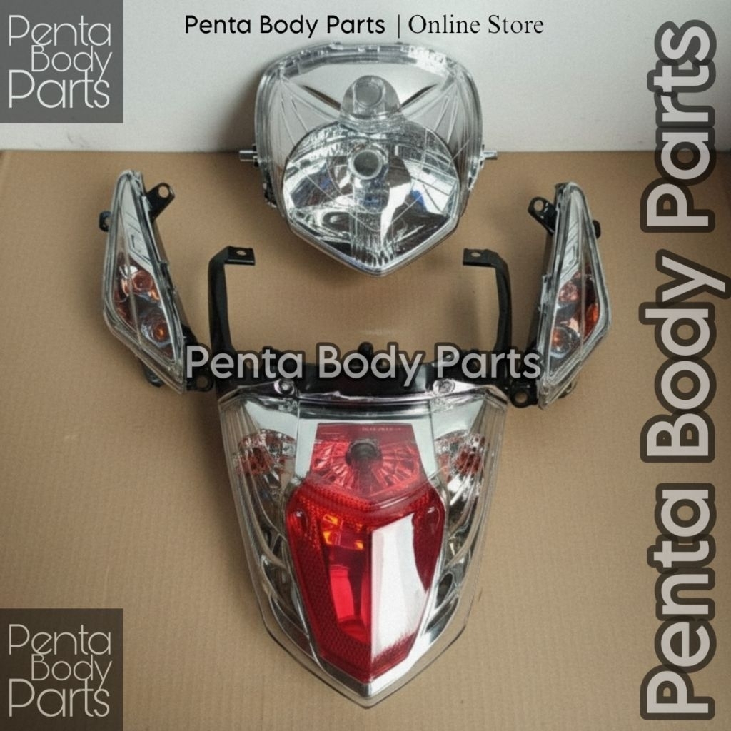 Full Cover Body Merah Revo 100 (KVR) - Ful Set Bodi Plus Lampu Honda Revo Lama / Lancip Silver Hitam 2007-2010