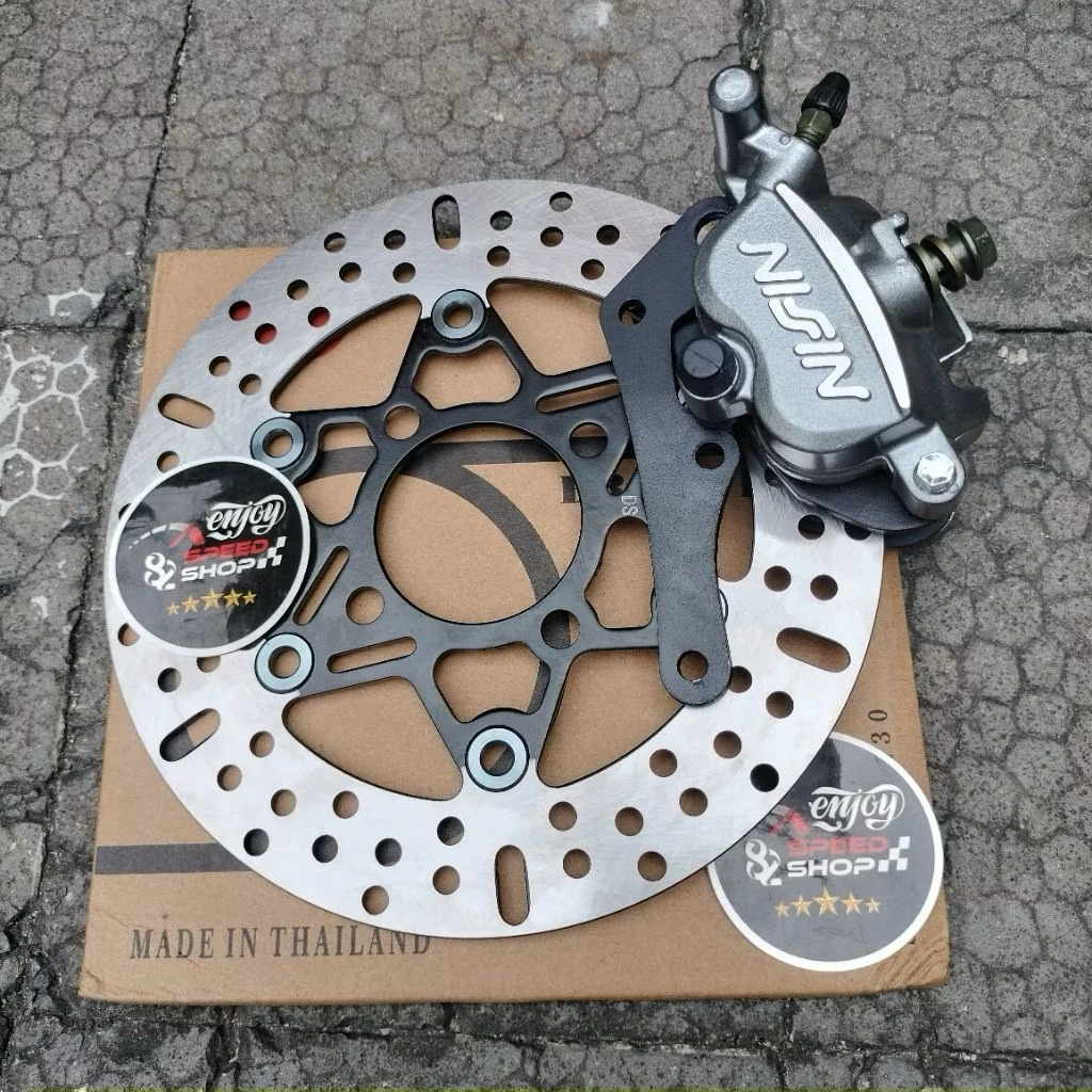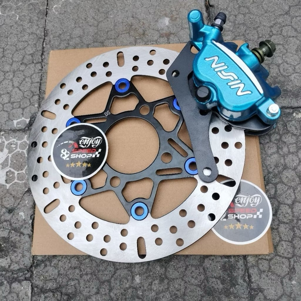 Paket Breket / Bracket Plat Besi Plus Kaliper Nissin Samurai Disc 220 motor Beat Scopy Vario Lubang 4