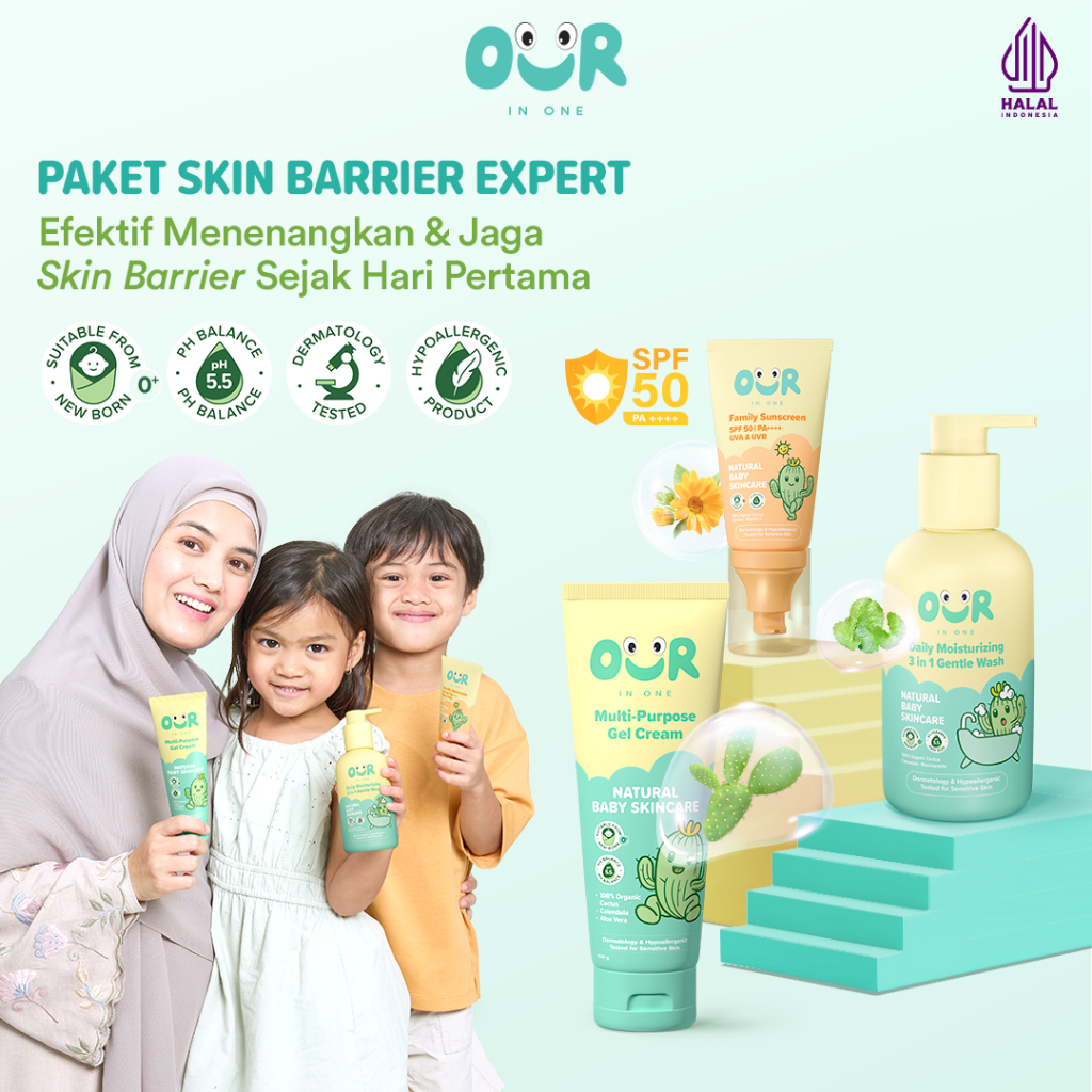 Our In One Paket Skincare Bayi & Anak Skin barrier Expert - Sunscreen, Sabun Gentle Wash, Gel Cream