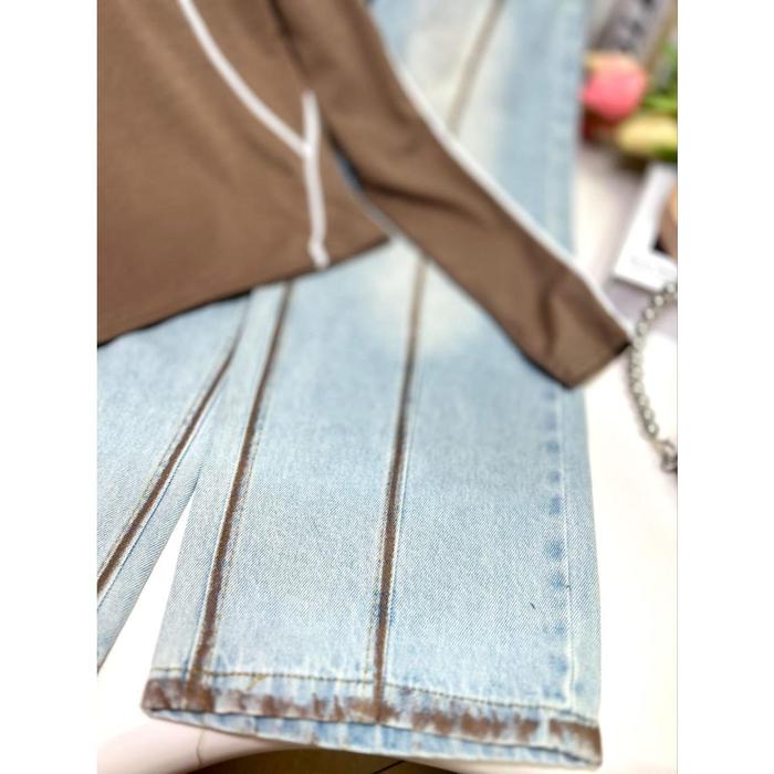 Cleynkidz C20259 Baju Setelan Anak Fashion Kekinian Baju Lengan Panjang Anak + Celana Jeans Garis Baju Trend Anak Fashio
