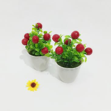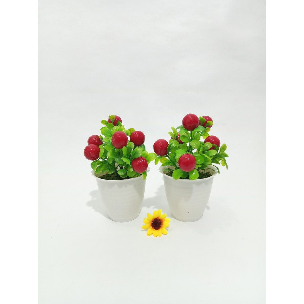 BUAH CERI POT 7CM BUAH HIAS DAUN PLASTIK