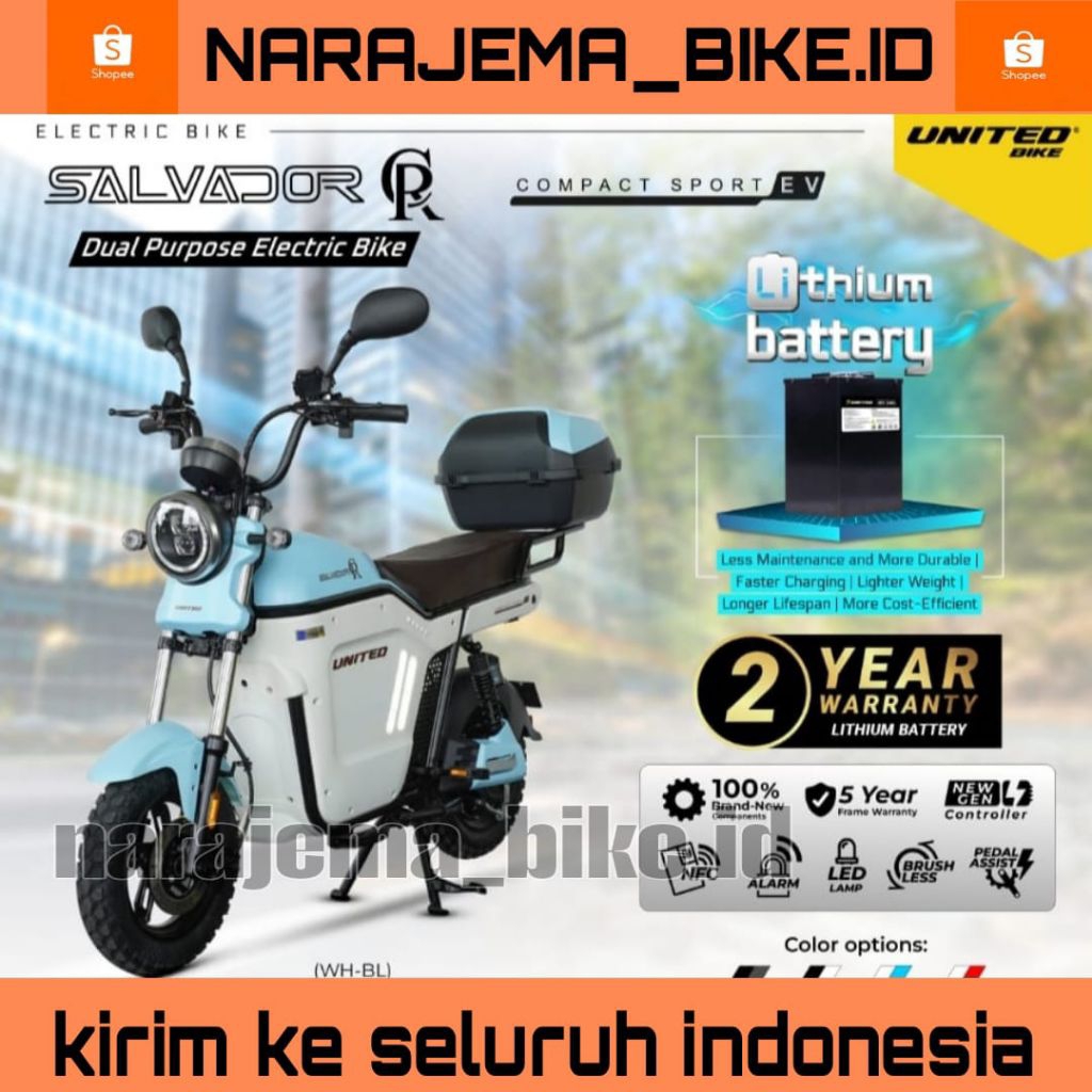 sepeda listrik Lithium UNITED SALVADOR CR 48V/24Ah Power 800 Watt
