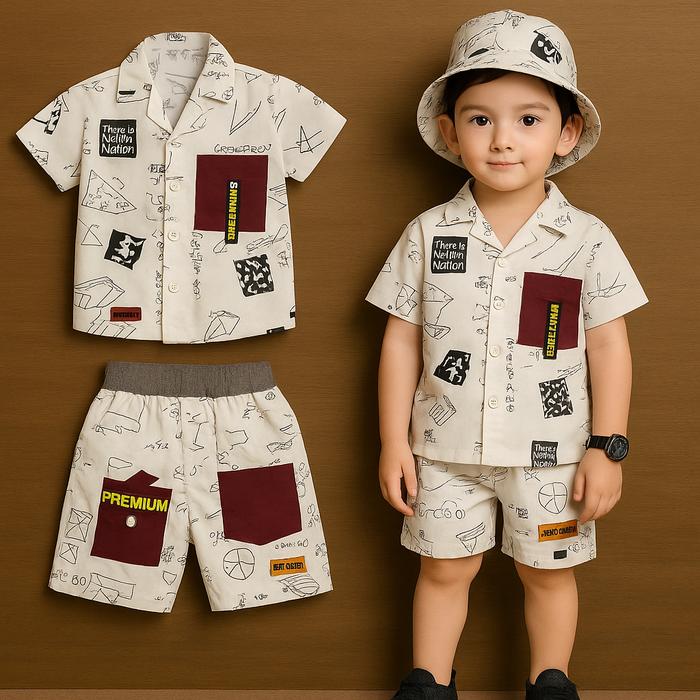 Free Topi Setelan Motif Surfhing Distro Baju Anak Laki-Laki Lengan Pendek Usia 5 Bulan - 5 Tahun Bayi Parsel Katun Paket