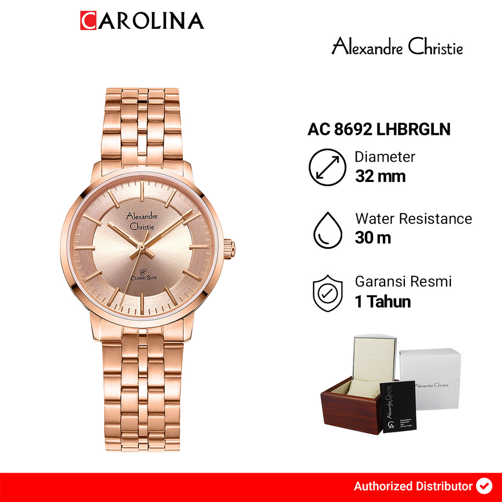 Jam Tangan Wanita Alexandre Christie Classic Slim AC 8692 LHBRGLN Rose Gold Dial Rose Gold Stainless Steel Strap