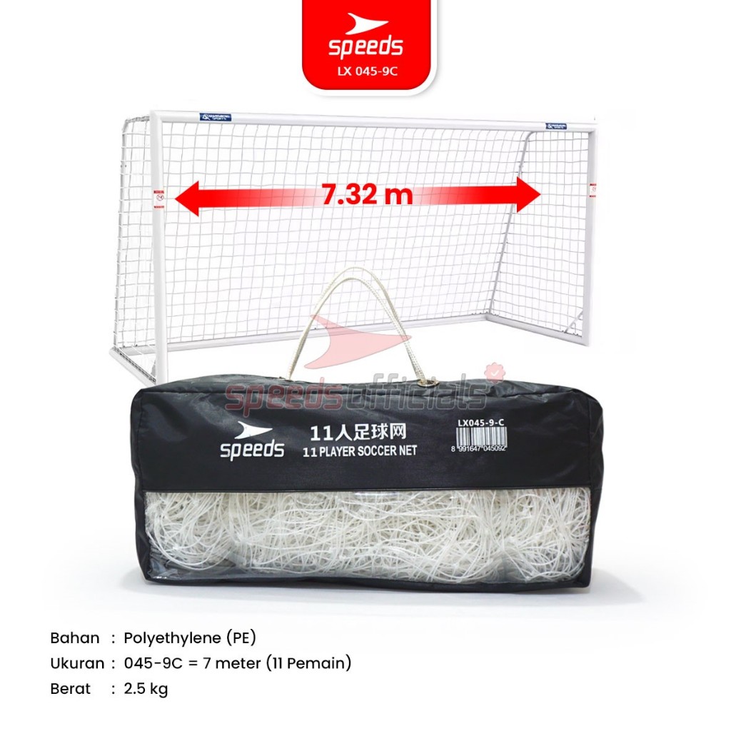 SPEEDS Jaring Gawang Sepak Bola 7x2m 1 Set 2 Gawang Profesional Futsal Soccer Net Goals Standard 045-9