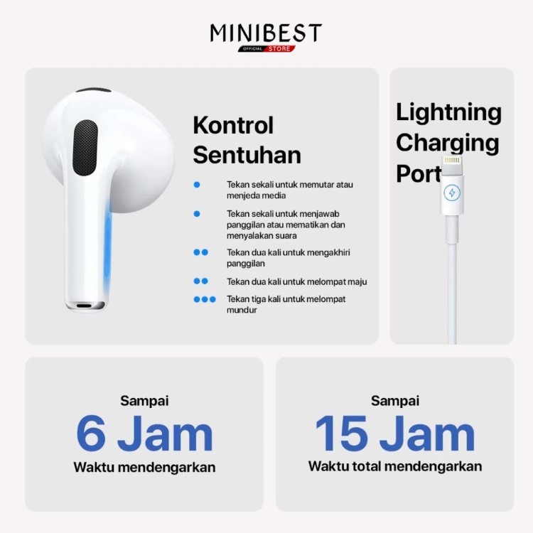 TWS Earphone Headset Bluetooth V5.2 In ear MINIBEST M4 Gen 3 Detection Wireless Charging