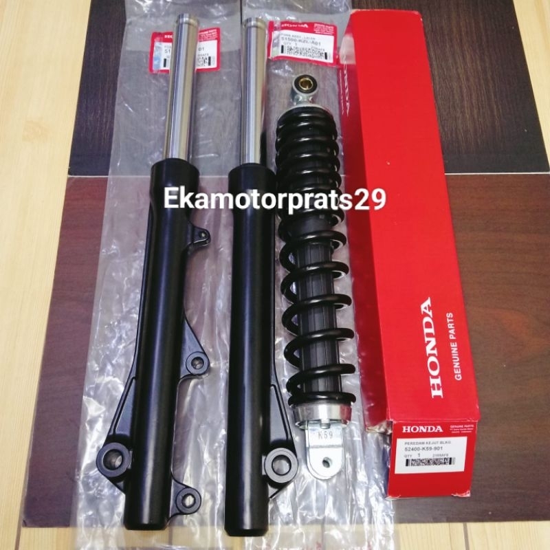 Paket As Shock Depan Plus Tabung KZL + Shockbreaker Belakang K59 Honda Vario 125 fi esp/Vario 150 LED old/Vario 150 new