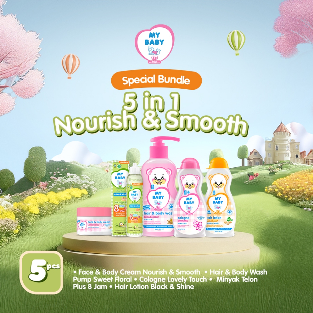 Nourish & Smooth, Fresh & Moist, Calm & Relax, Minyak Telon & Hair Body Wash