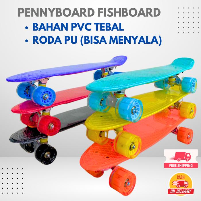 PENNYBORD SKATE BORD FISH BANANA BOARD - MERAH, LED