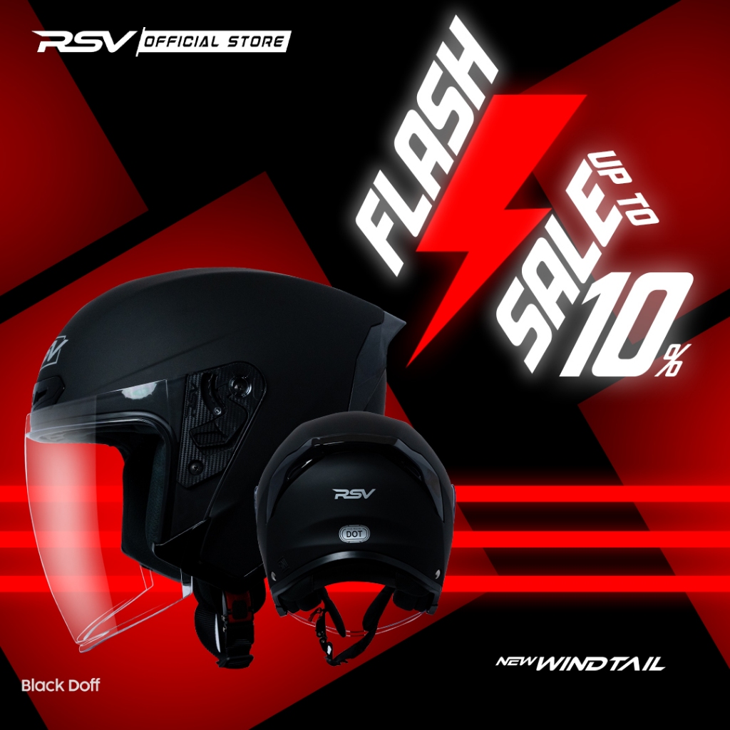 [Mall] HELM RSV NEW WINDTAIL BLACK DOFF/MATTE SINGLE VISOR HALF FACE UNISEX PAKET GANTENG BERKUALITAS