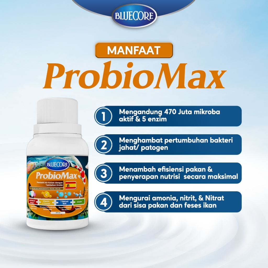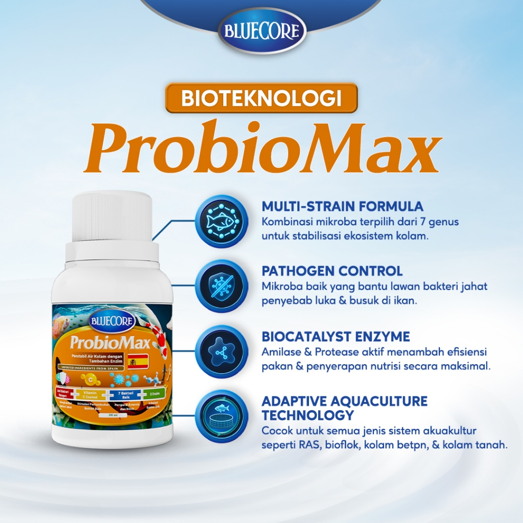 BlueCore Probiomax Probiotik Multi-Strain ALL IN ONE dengan tambahan Enzim, Sebagai Bakteri Starter pada kolam ikan untu