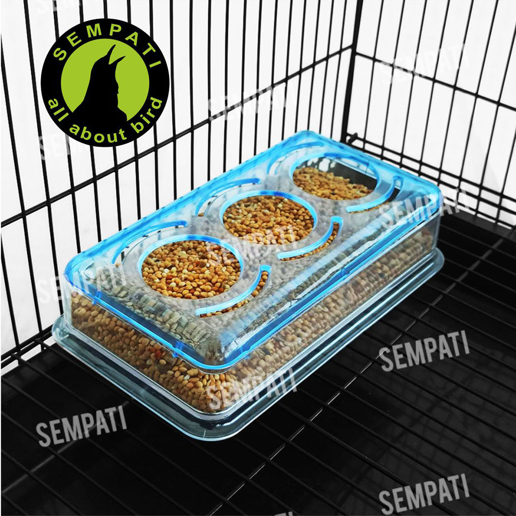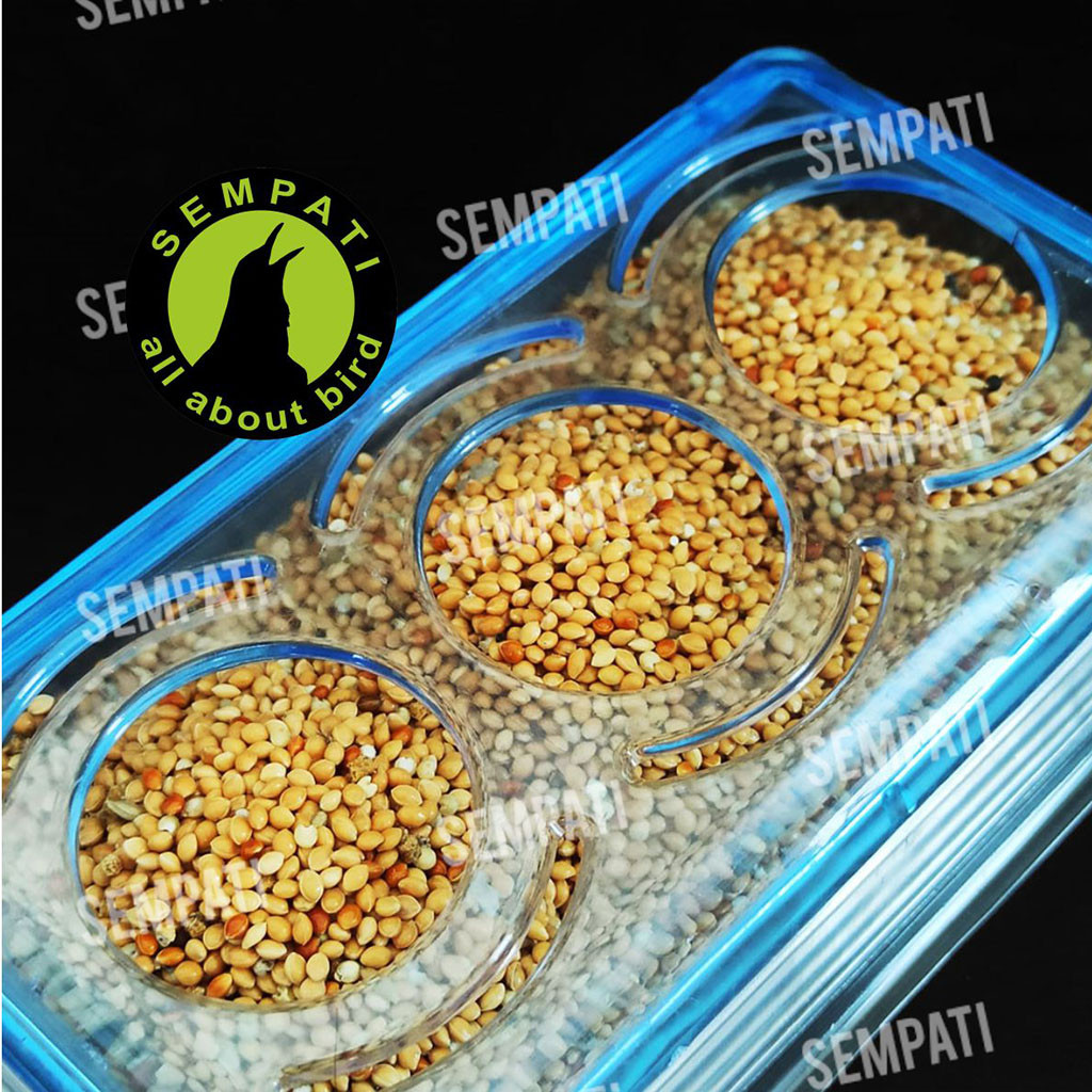 SEMPATI Cepuk Ram Wadah Pakan Burung Anti Tumpah Cepuk Ram Plus Tutup 3 Lubang Tempat Voer Pur Milet Millet Makanan Buru