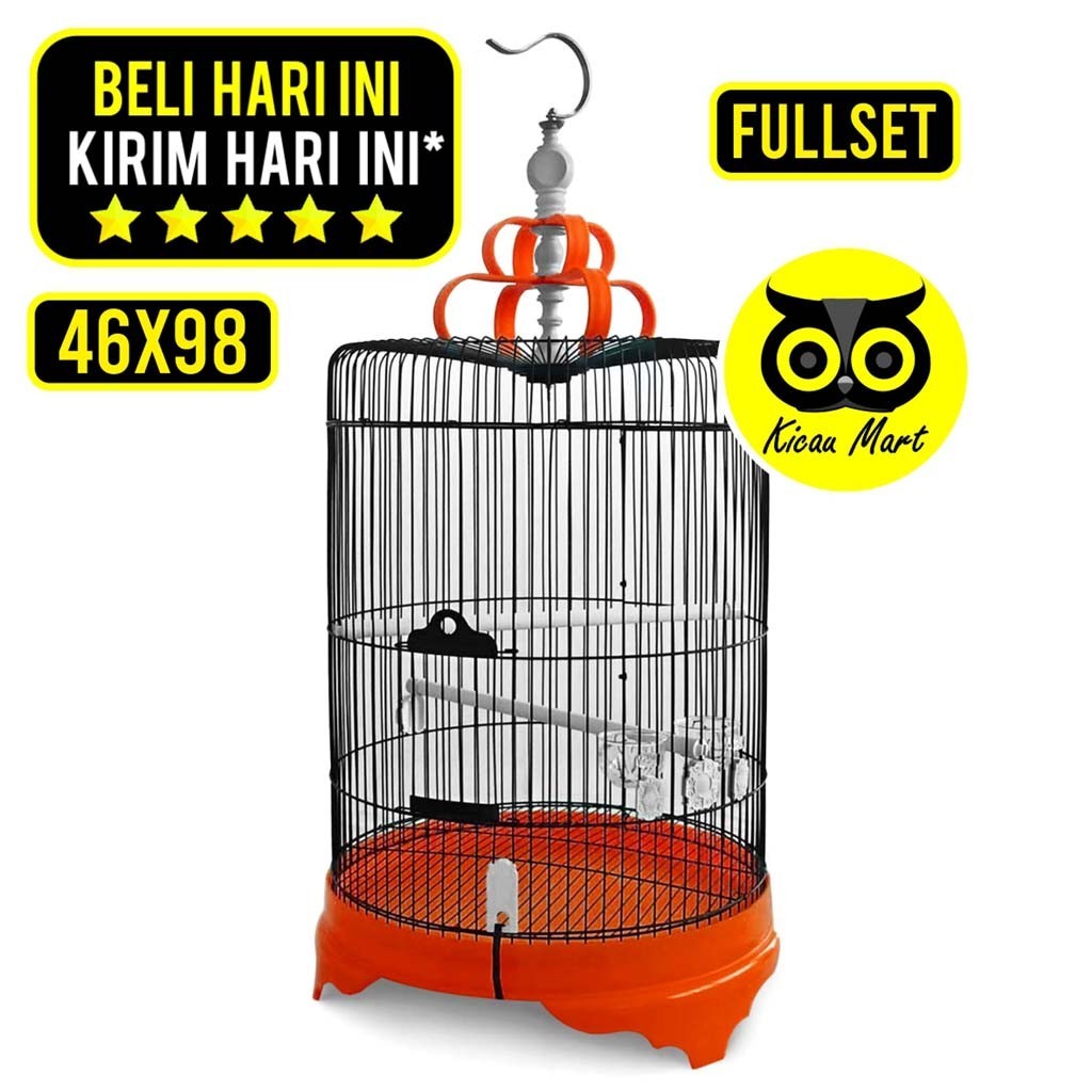 KICAU MART Sangkar Murai Jumbo Fullset Diameter 46 Cm Kandang Burung Murai Poksay Kacer Cucak Ijo Besi Import Tebal Tebo