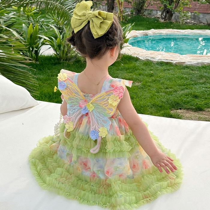 Enchanted Princess 2-11 Tahun Gaun Anak Perempuan Gaya Baru Gaun Putri Bergaya Anak-Anak Dengan Sayap Dan Topi - Hijau,