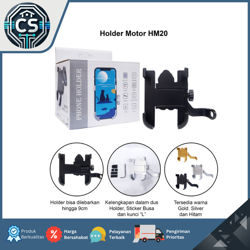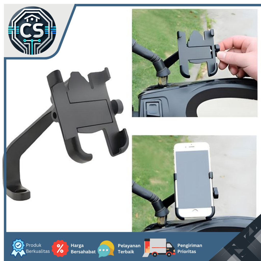 Holder HP Motor Besi Full Metal C2 Spion Universal – Kuat & Berkualitas