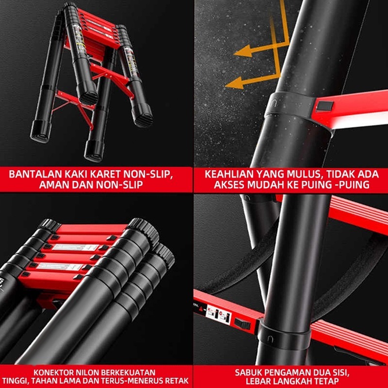 DEKES Tangga Lipat Baja Karbon Teleskopik Double Telescopic Ladder Baja Karbon Double Telescopic Ladder 1.5M/1.9M/2.3M/2