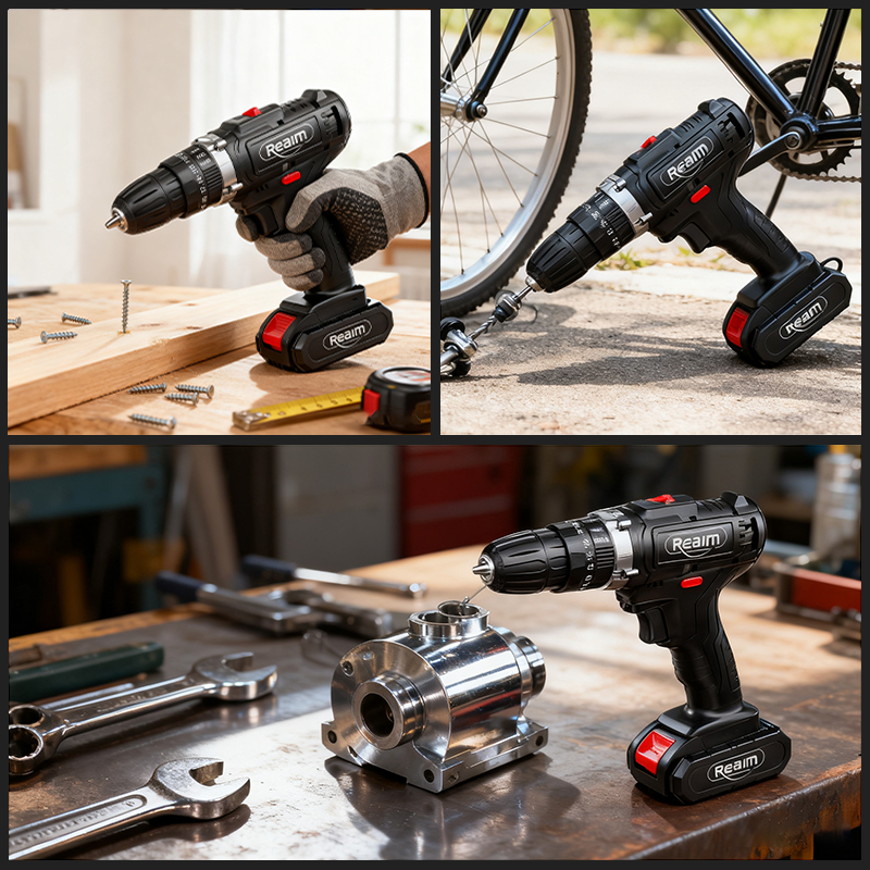 Reaim Mesin Bor 10MM Bor baterai Bor Listrik Electric Drill Bor Impact listrik Bor listrik Set