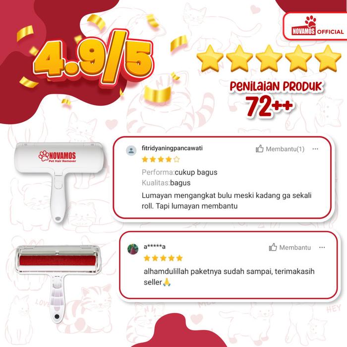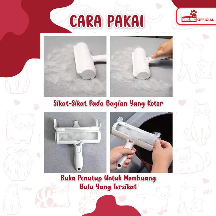 NOVAMOS PEMBERSIH BULU KUCING DAN ANJING PET HAIR REMOVAL LINT ROLLER PORTABLE PEMBERSIH BAJU PAKAIAN SOFA TEMPAT TIDUR KARPET MATRAS PENYEDOT BULU - PUTIH