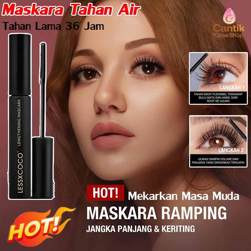 Mascara anti air dan anti lecet, LESSXCOCO Base mascara yang membuat bulu mata terlihat panjang Tahan lama hingga 36 jam