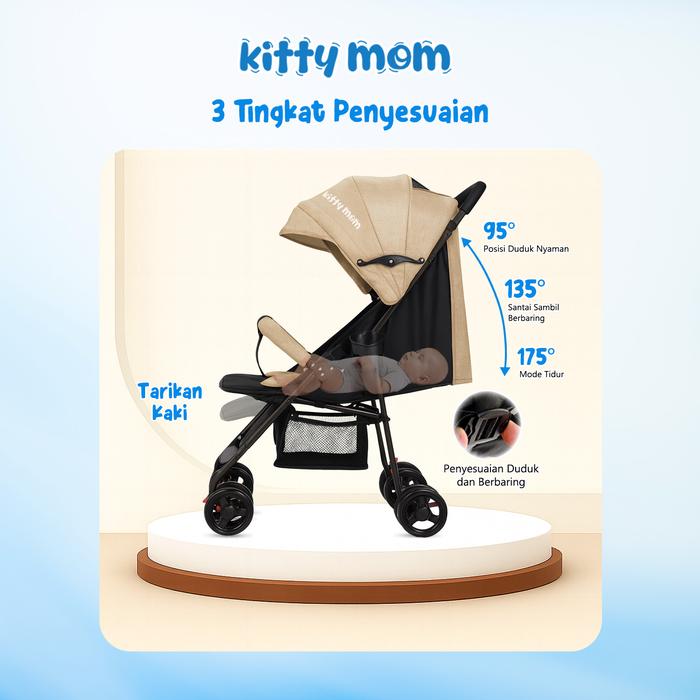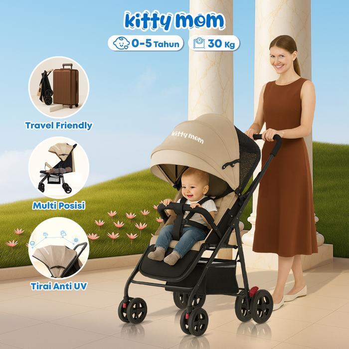 KITTY MOM STROLLER BABY BAYI TRAVELLING NEWBORN | KERETA DORONG ANAK LIPAT | STROLER BABY - BABY SWIFT KHAKI
