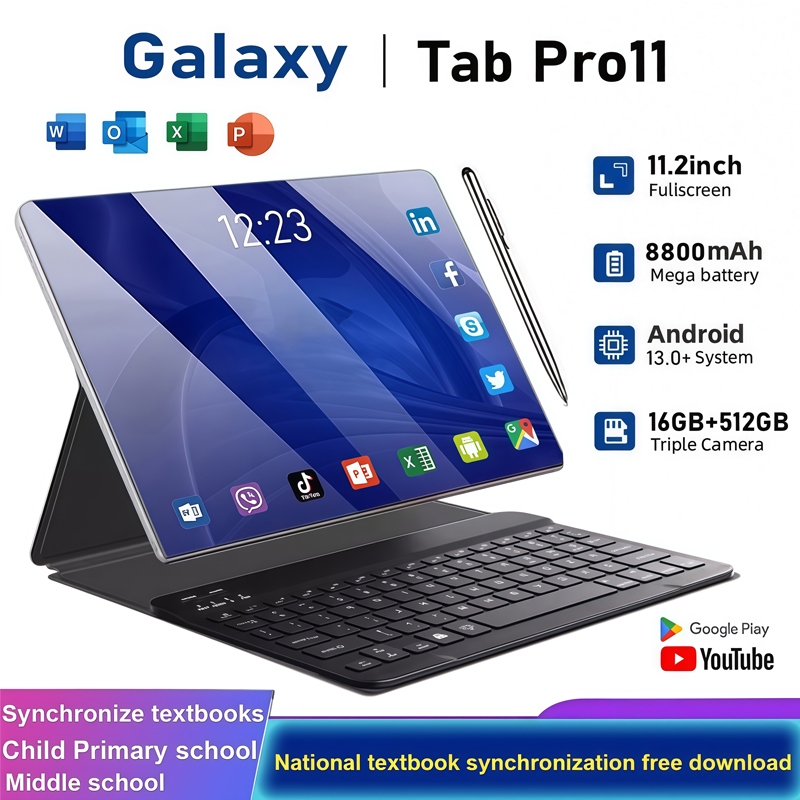 Tablet baru 11.2inch【16GB+512GB】Galaxy tab Pro11 untuk pembelajaran dan hiburan kantor ultra tipis SiM/WiFi tab Komputer tablet murah Tablet Android 13.0 e
