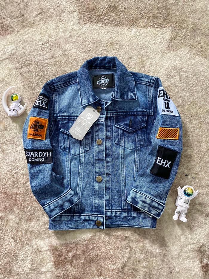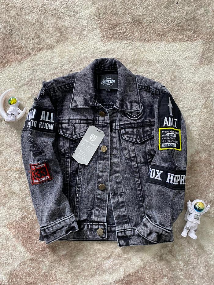 Jaket Jeans Anak Bordir dengan motif robekan cewek cowok Fashion couple keluarga