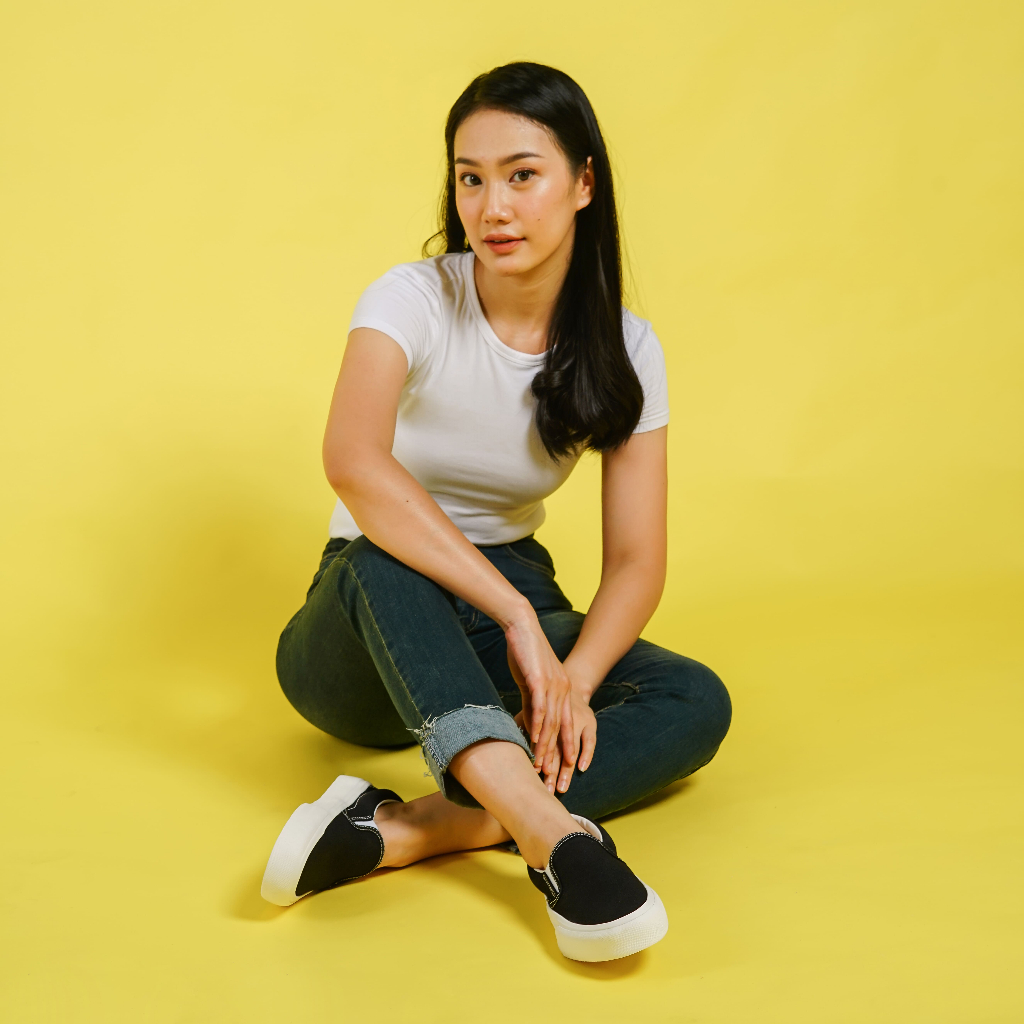 Bavito 36-44 Comrade Hitam Putih - Sepatu Slip On Slop Casual Sneaker Pria Wanita