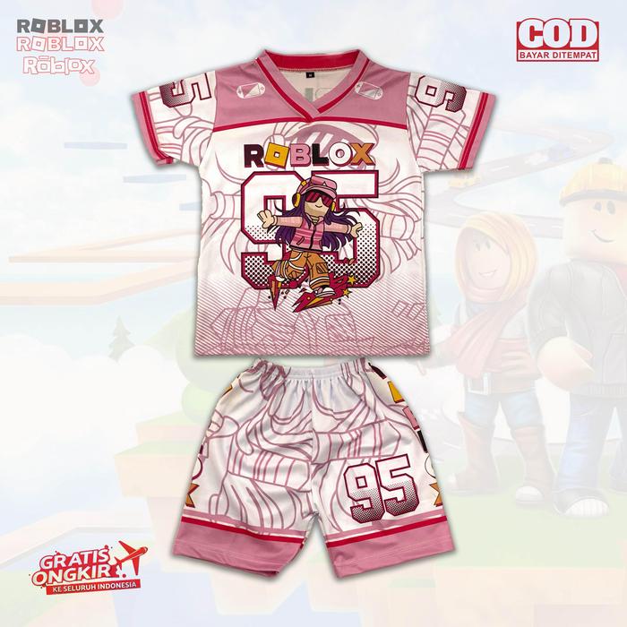 Oneset Olahraga Outdoor Sport Stelan Kaos Baju Anak Jersey Oversize Lengan Pendek Usia 2-12 Tahun Viral - Pink Roblok 95