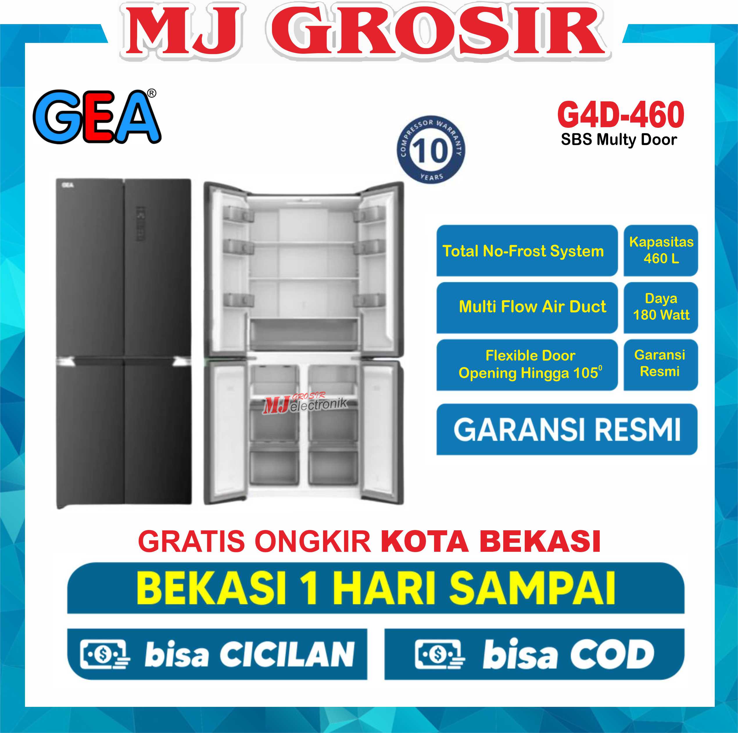 KULKAS GEA G4D 460 LEMARI ES SIDE BY SIDE 4 PINTU MULTI DOOR FIT-IN BLACK