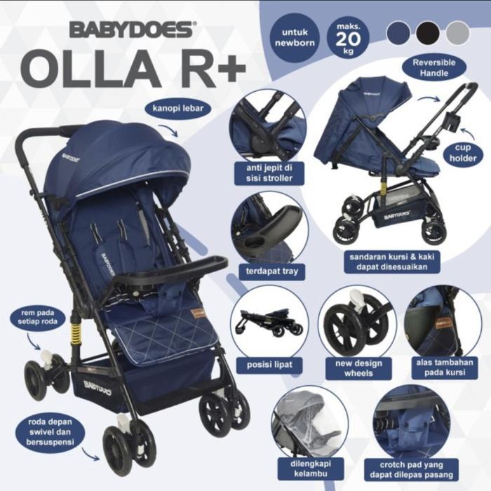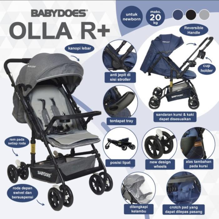STROLLER REVERSIBLE BABYDOES OLLA R+ / KERETA DORONG BAYI KURSI RODA 2 ARAH - GREY, PLASTIC WRAP