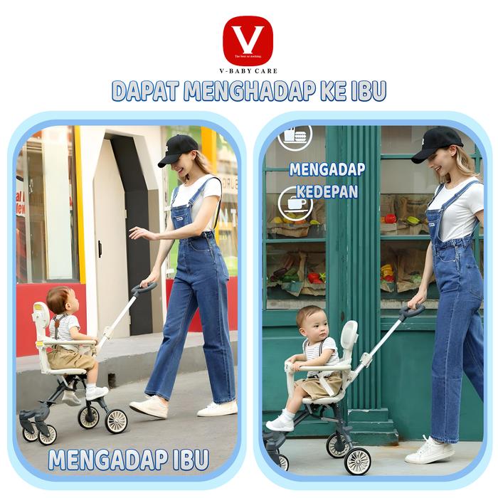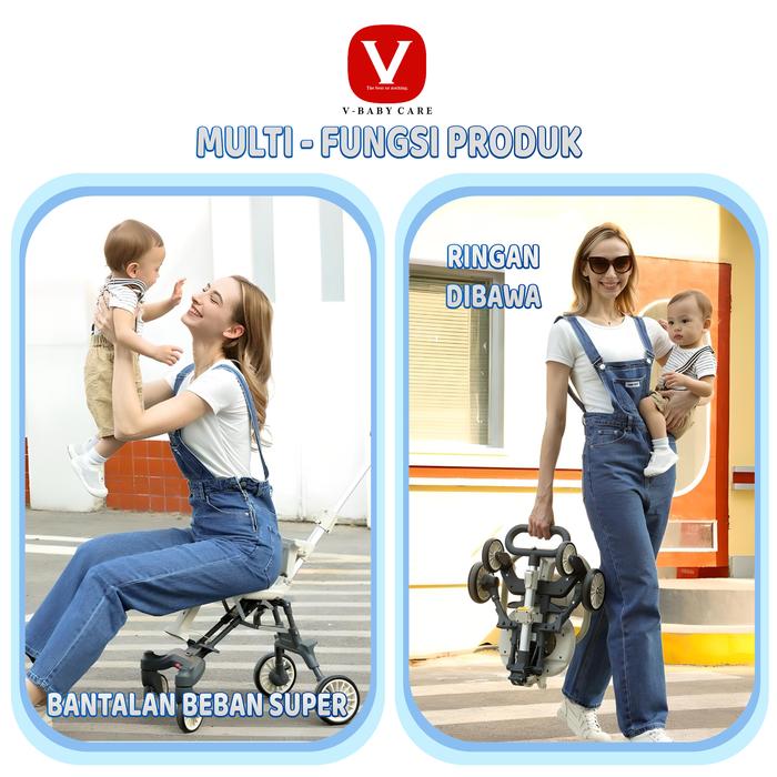 VBABY CARE MAGIC STROLLER BABY 2 WAY TRAVEL LIGHTWEIGHT FOLDABLE BAYI DORONG RODA DORONGAN - Q1-BLACK