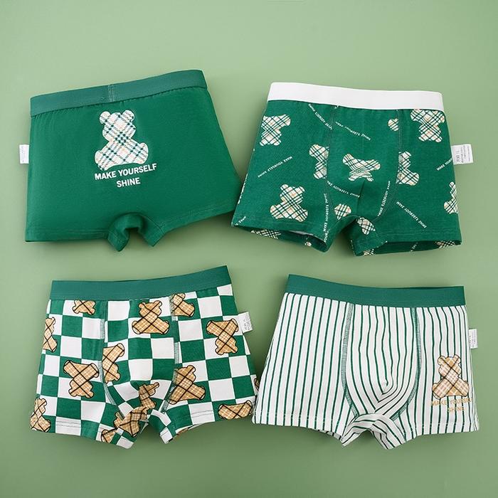 Missoofficial.Id Bx1505 Boxer Celana Dalam Pendek Anak-Anak Unisex Cd Katun Motif Kartun Bear Ber Lucu Fashion - Garis,