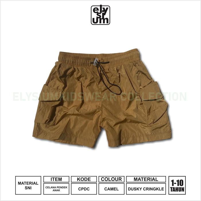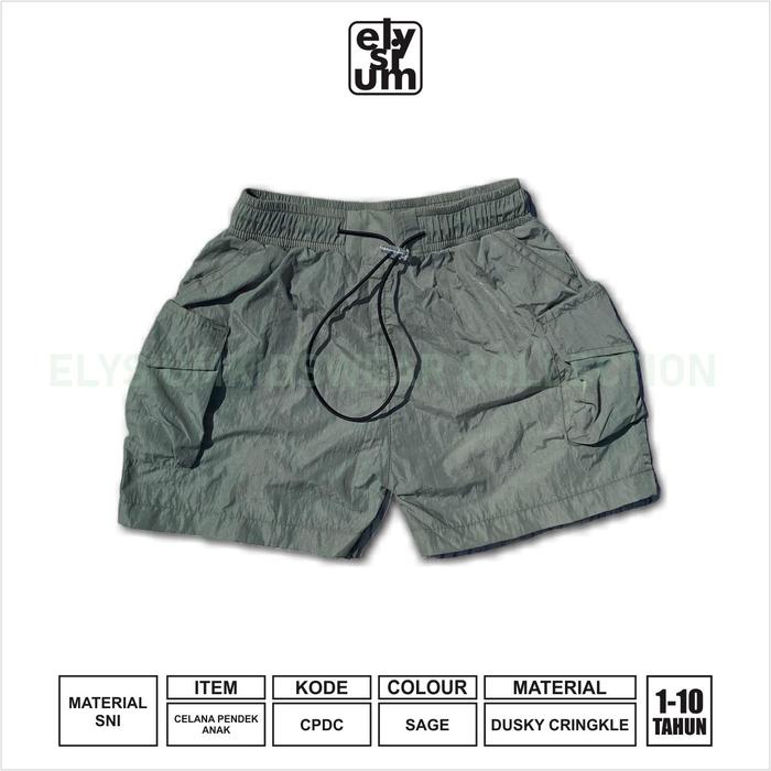 Celana Cargo Anak Elysiumkidswear Model Kekinian Bahan Dusky Cinkle Fashion Katun Laki-Laki Perempuan - Parasut Sage, L