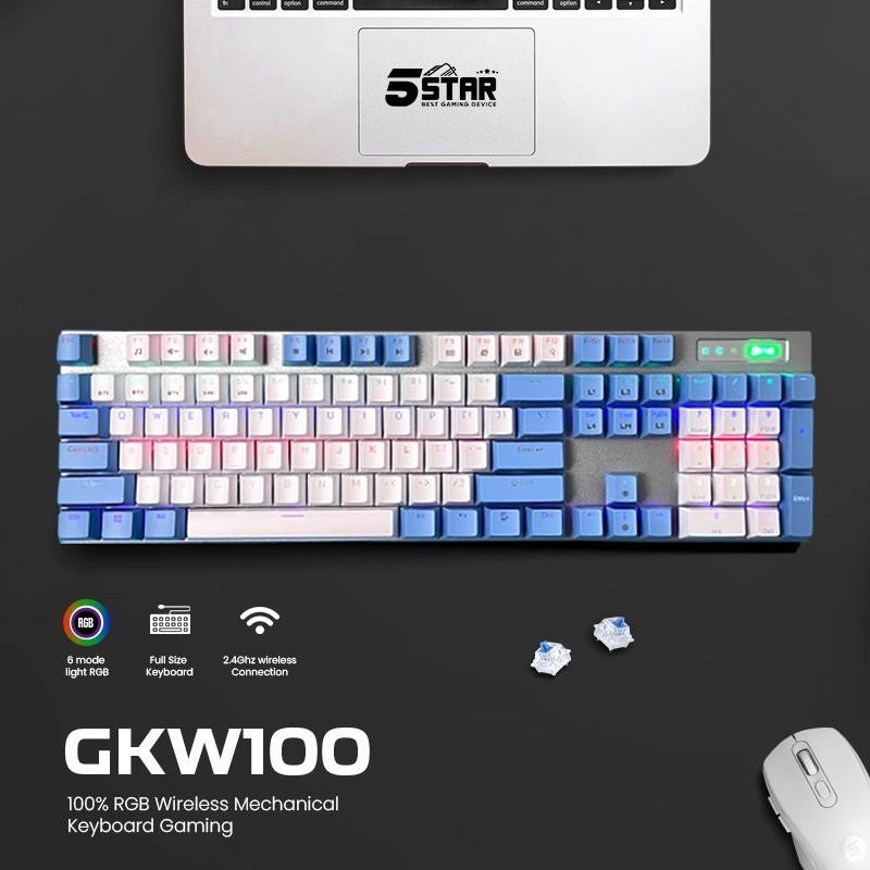 5Star GKW100 Mechanical Keyboard Blue Switch 104 Keys RGB Hotswappable Detachable type-C Full Size
