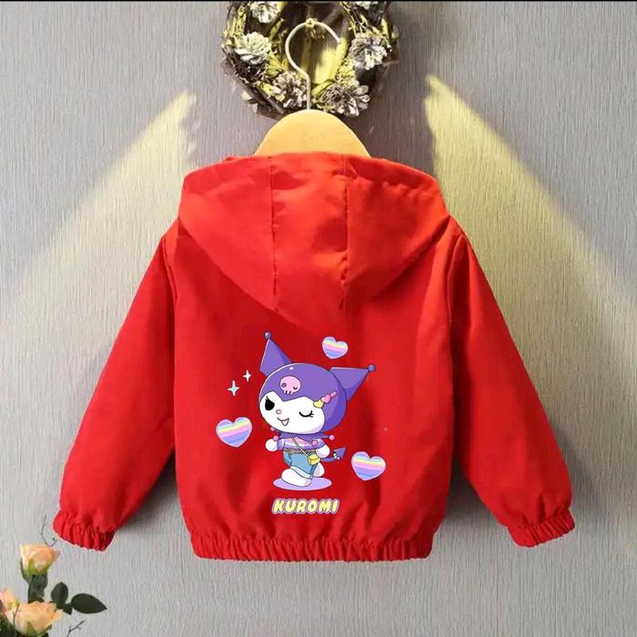 Jaket Hoodie Bergambar Kuromi/ Jaket Anak Waterpoof Kids Fashion - Pink Kuromi, S 1-2 Thn