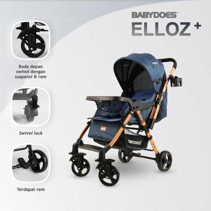 BABYDOES ELLOZ+ STROLLER REVERSIBLE HANDLE/KERETA DORONG BAYI - NAVY, PLASTIC WRAP