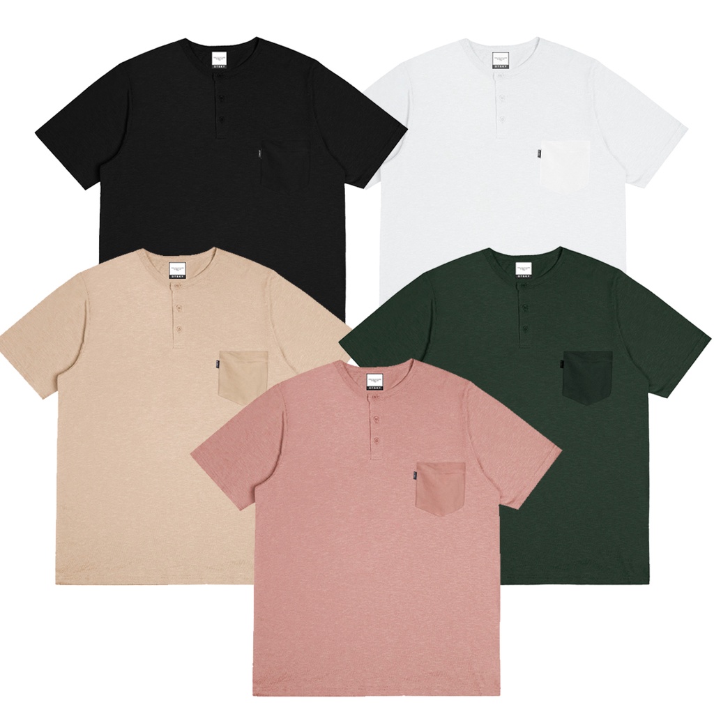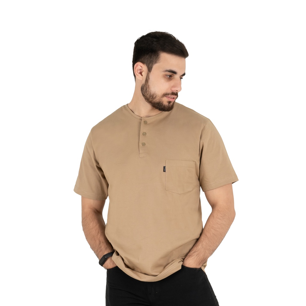 Otsky Kaos Pria Pocket Kancing Henley tee Cotton Combed 24s Pendek (H)