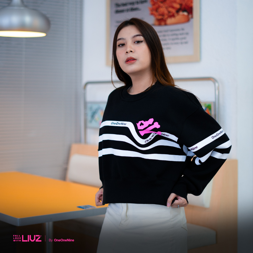 Oneonenine Livz Crewneck Crop Top Dune Black - Sweater Crop Wanita