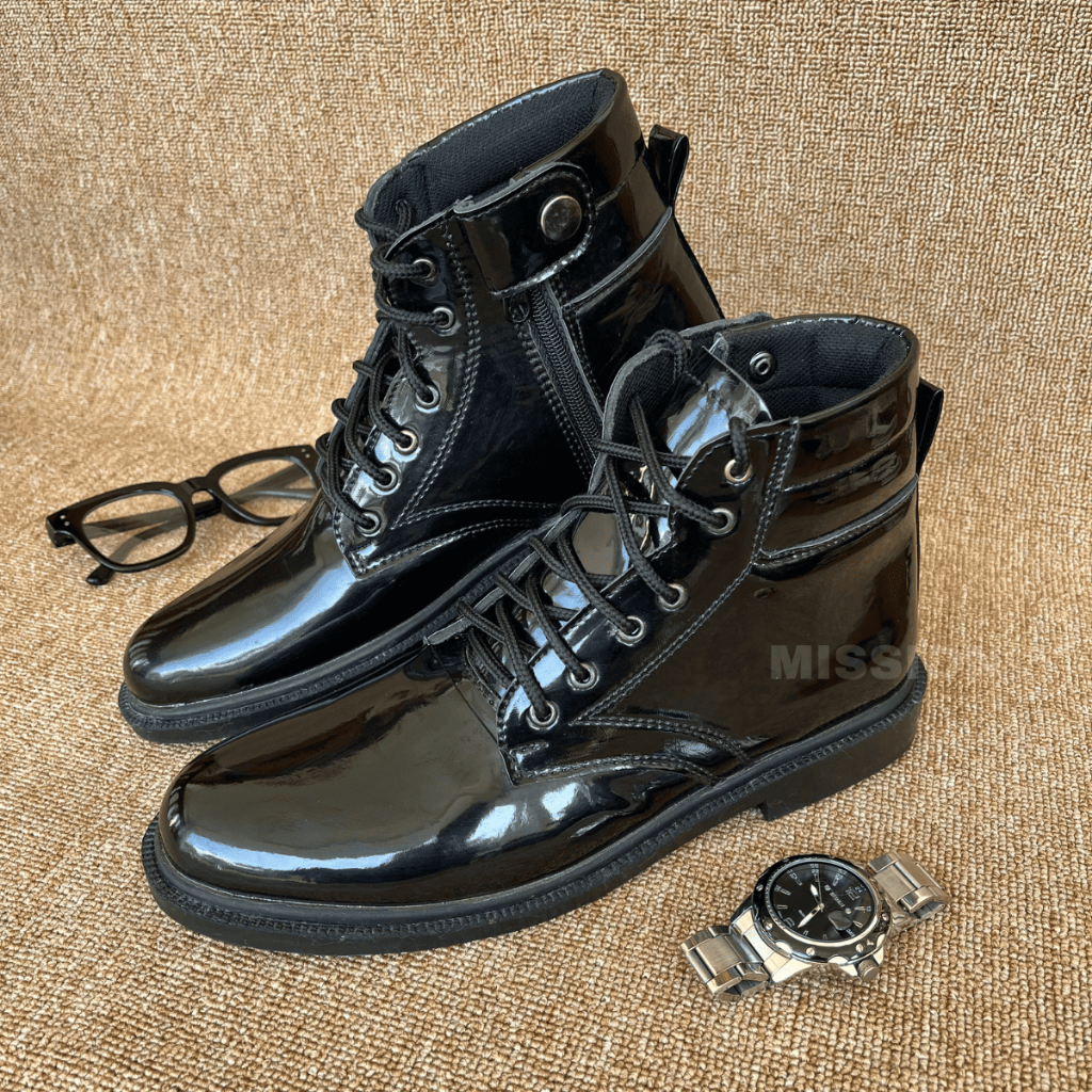 Sepatu Pria PDH Boots Pantofel Untuk Dinas Satpam Security TNI Polisi Polri Paskibra Hitam Mengkilap