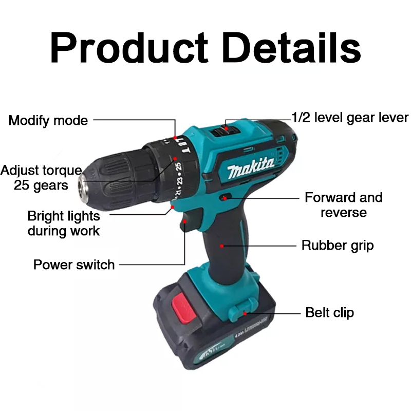 Makita DF331 Bor Tangan Listrik Tanpa Kabel 68V Bor Impact Bor Obeng Listrik Multi-alat