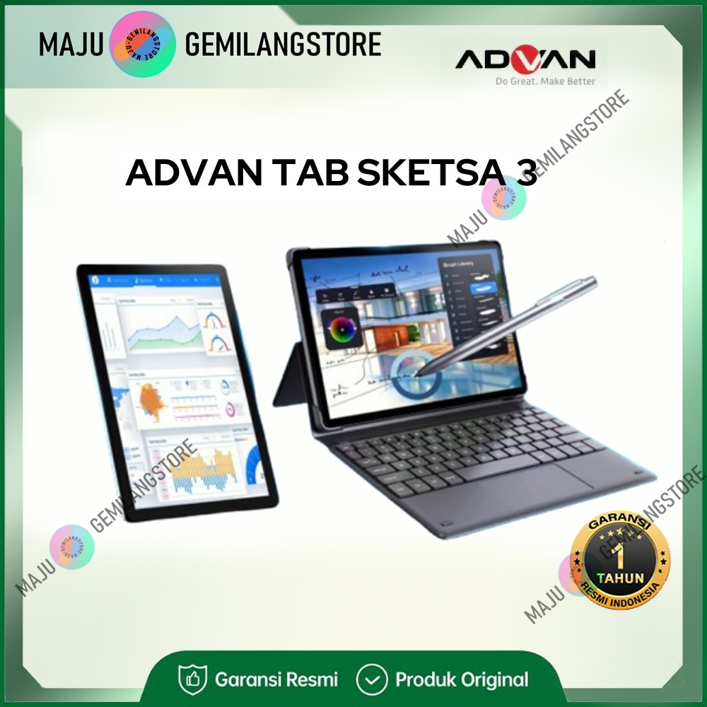 ADVAN Tab Sketsa 3 ram 6GB 128GB Tablet, Pen & Keyboard 10.1" HD IPS Tiger T606 Android Sketsa3 6/128