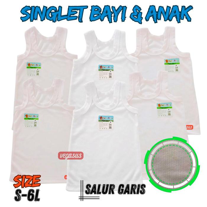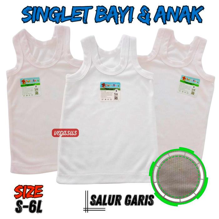 6Pcs Singlet Kaos Dalam Anak Laki Usia 1-15Tahun-Kutang Syani S,M,L,Xl,3L,4L,5L,6L Katun Bayi Perempuan Cewek - 3Pcs, S