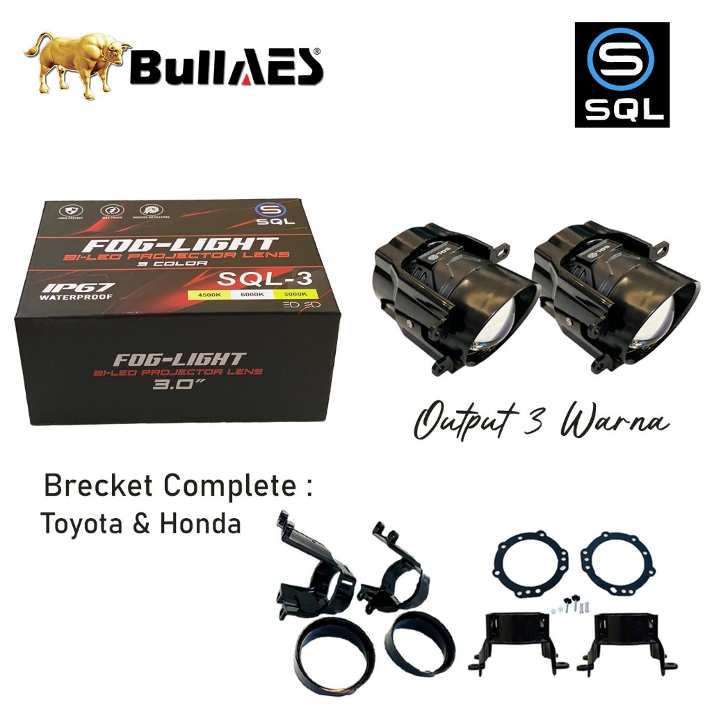 Foglamp Biled Foglight Bilaser 3 Inch SQL Bluelens 3 Warna With Devil Eye Waterproof Bracket Komplit
