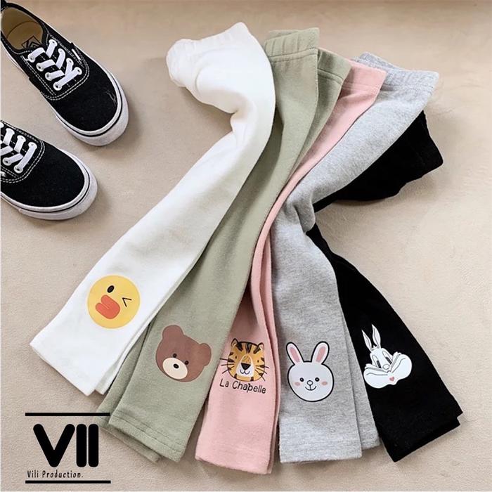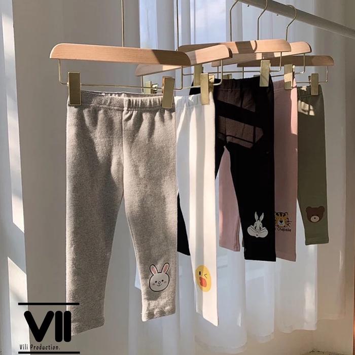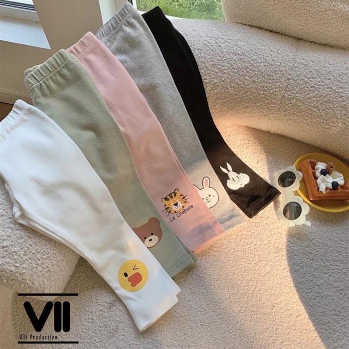 Paket 5 Pcs Legging Anak Perempuan Karakter 1-10 Tahun Katun Rib Spandek / Katun Nyaman Berpori Lembut Bayi Balita Cew