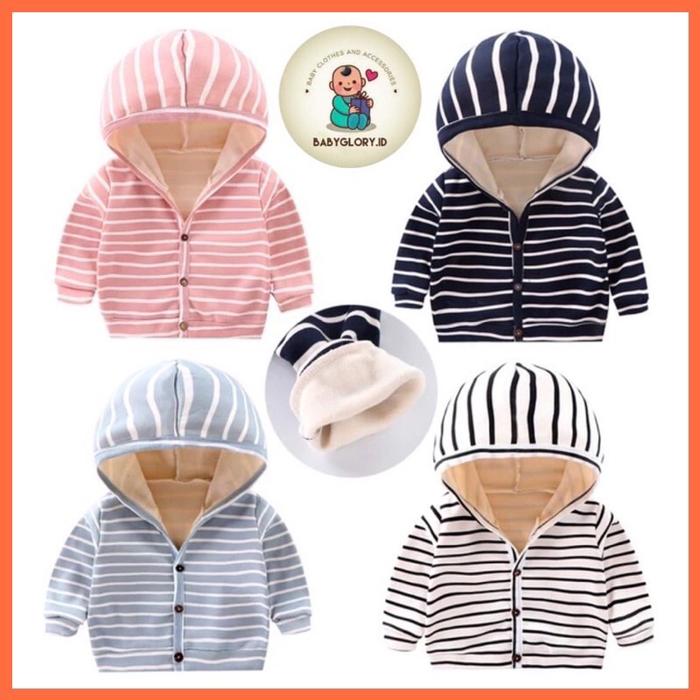 Jaket Anak Cowok Cewek Unisex Import / Jaket Bayi / Hoodie Anak / Jaket Anak / Bayi - Black Garis, 806-12Bl
