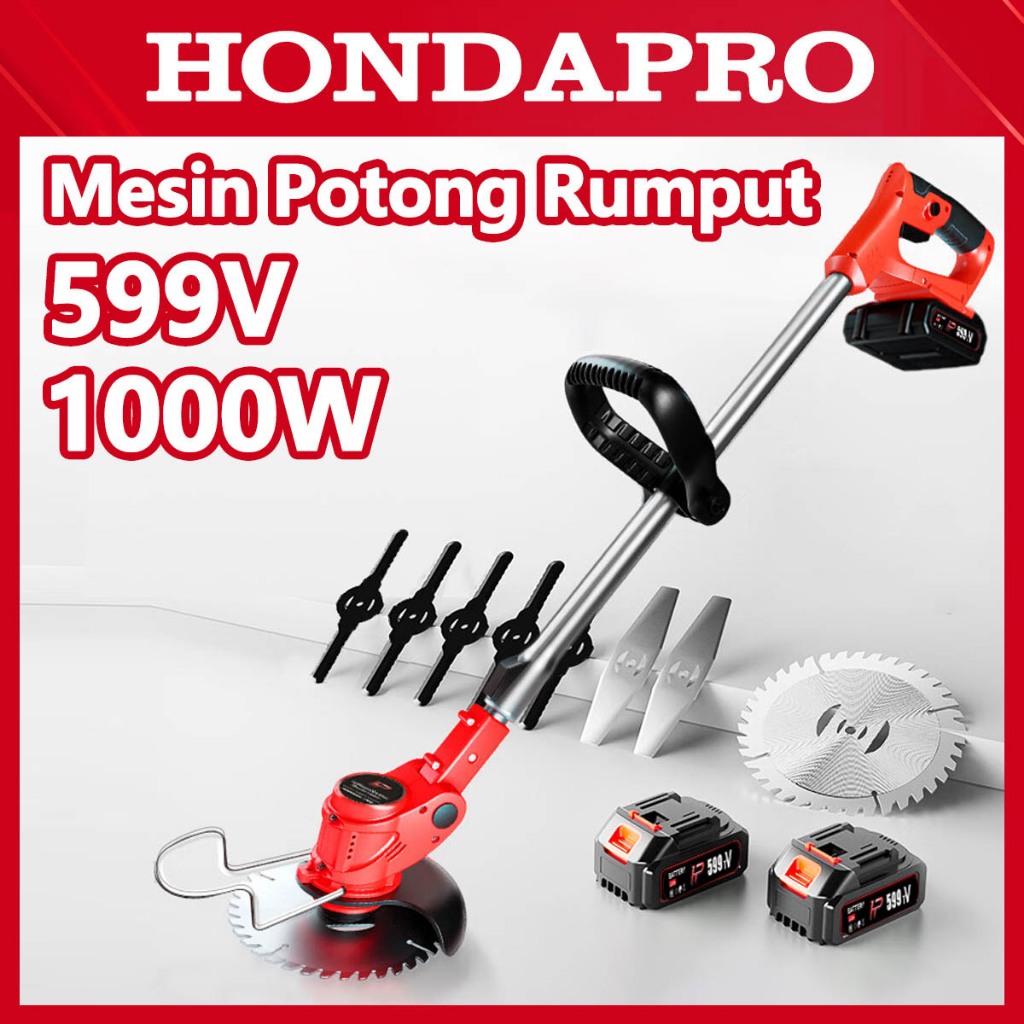 HONDAPRO Mesin Potong Rumput 1000W Pemotong Rumput Listrik Pemangkas Rumput dengan Baterai Li-ion