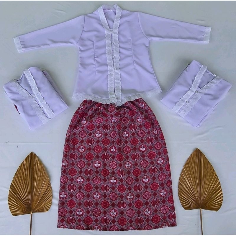 Radjana Seragam Sekolah SD Setelan Kebaya Encim Anak SD TK ukuran Kelas 1 - Kelas 6 Renda Batik Adat Sunda