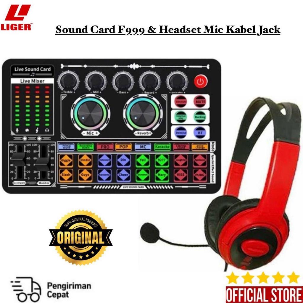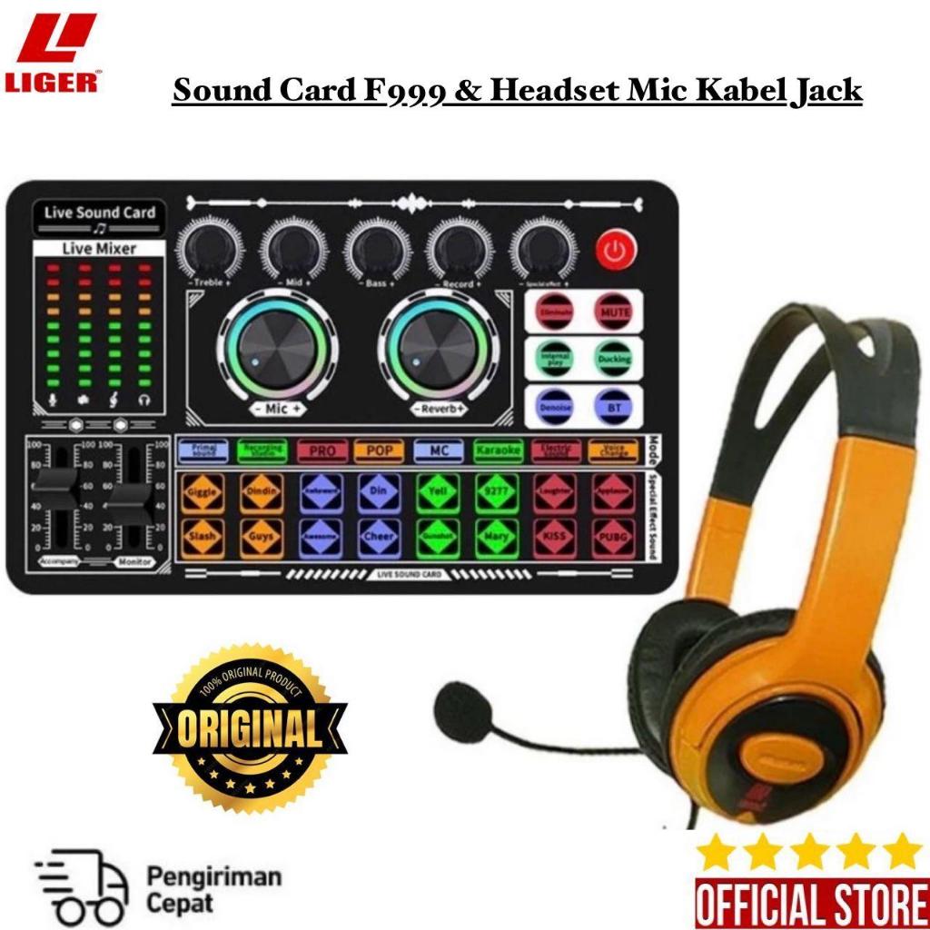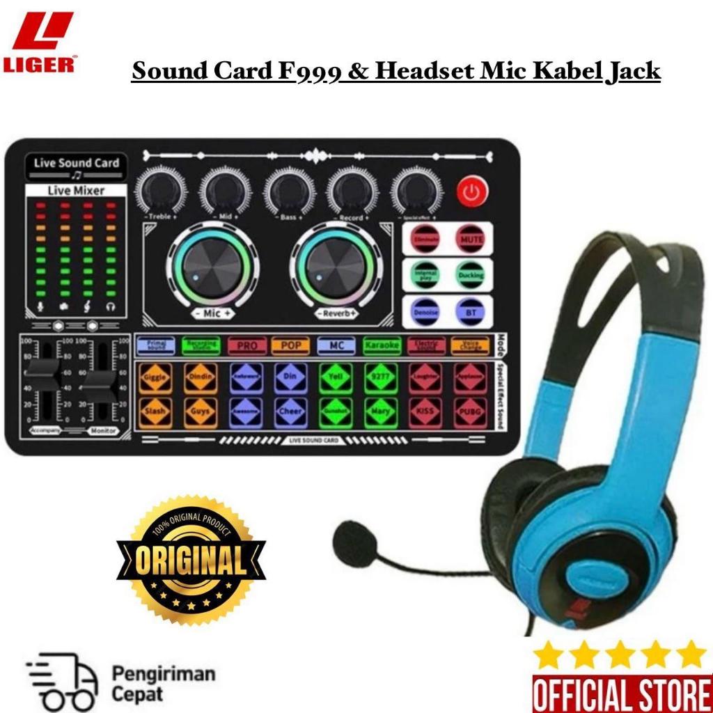 LIGER - Soundcard F999 Full Set + Headset X10 Microphone paket lengkap headphone microphone audio jack dan sound card co